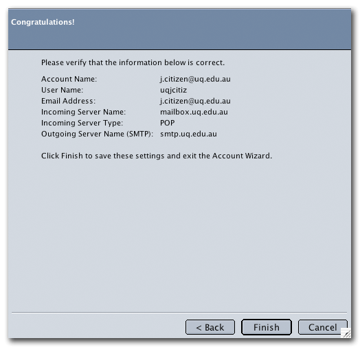 | 8)Type in your name as you would like to appear in outgoing email messages |