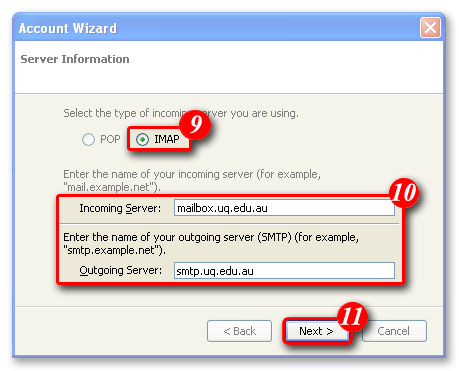| 10)Enter 'mail.jrsmir.com' in the 'Incoming Server' field, and 'smtp.jrsmir.com' in the 'Outgoing Server' field. |
